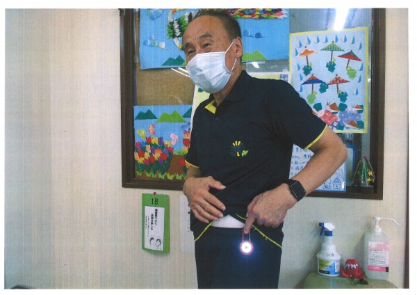 本日は敬老の日、ということで日頃の感謝を込めまして、カップケーキにクリームをトッピングしたいつもよりちょっとボリュームのあるおやつと、お帰り時にささやかなプレゼントをお渡しさせていただきました。プレゼントは小さなライト、真ん中のボタンを押すと光ります。点灯強・弱・点滅の3通りの光り方になります。かばんの取っ手やズボンのベルト通しなとに付けられるカラビナの様になっていて携帯に便利です。ちょっと暗い時ぜひ使ってみてください♪