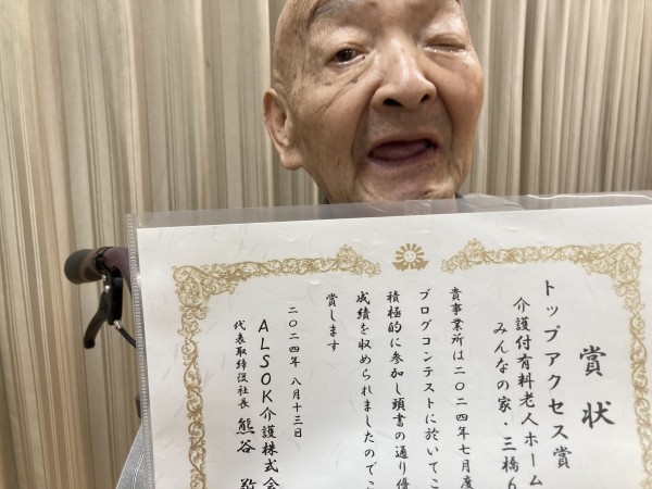 ★☆三橋6丁目がトップアクセス賞で賞状授与♪優秀な成績を収められたのでここに賞します2024年✨ 『みんなの家 三橋6丁目 介護ブログ』☆★