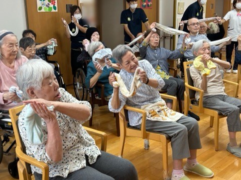 今月初めにリモートの『タオル体操』がありました。