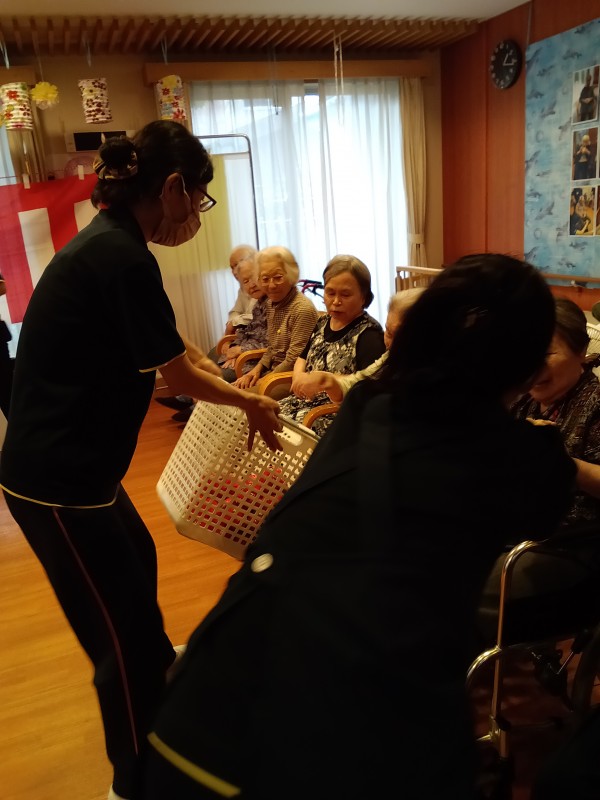 ホーム長の挨拶後、まずは、1階、2階チームに分かれて、玉入れをしました(^^♪