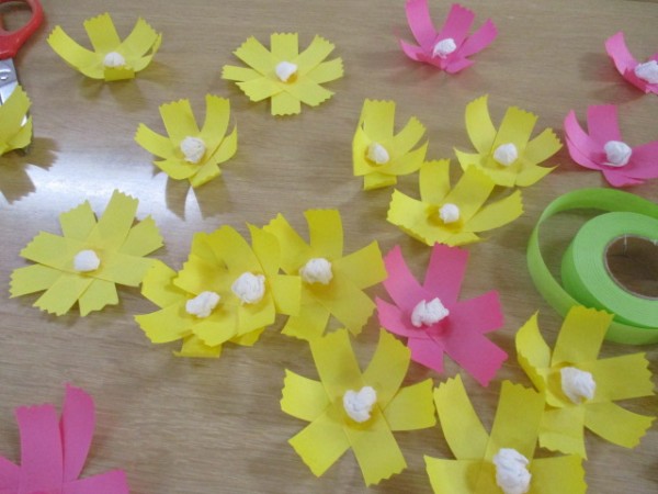コスモスを作りながら昔話しにもはながさきスタッフと笑いながら楽しい午後を過ごしました\(^o^)/