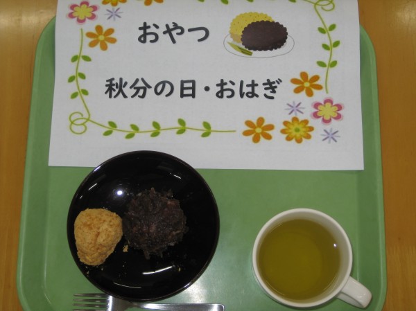 今日は秋分の日です。1階でおはぎを作りました。召し上がられているご様子をお知らせいたします!