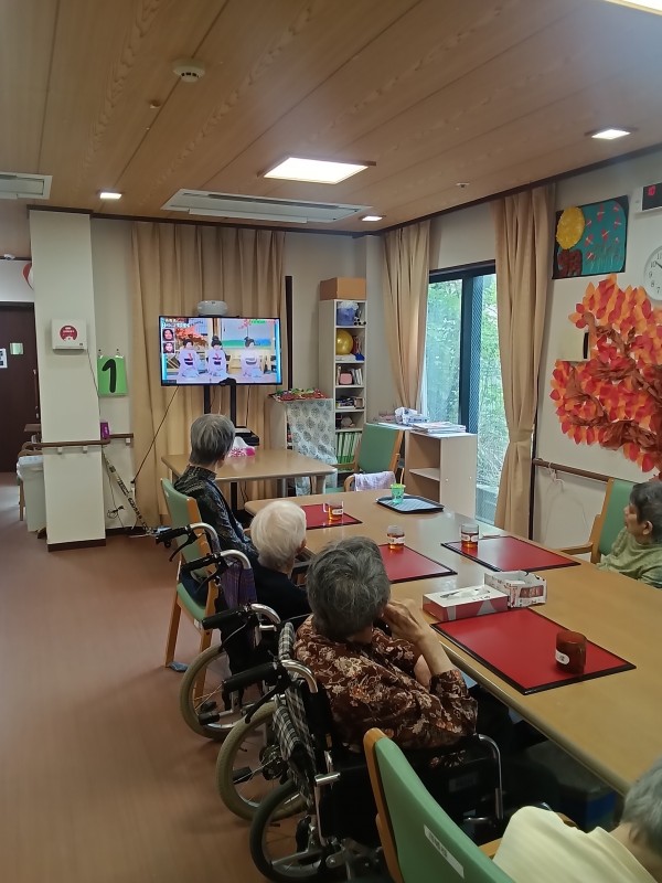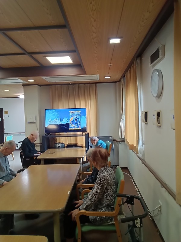 午前中は入浴される方もいらっしゃいますが、フロアにてテレビを見られたりして穏やかに過ごされています