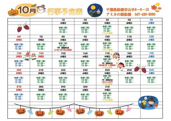 アミカ船橋の10月のイベントカレンダーが