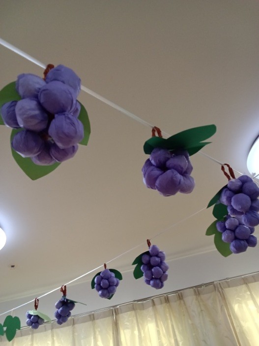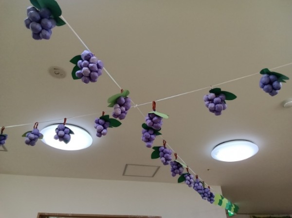 ぶどうがたくさん!!おいしそうな飾りが完成しました☆