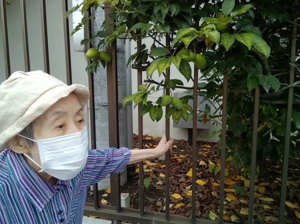 歩きながらハロウィン飾りを見つけて感心されたり、実をつけた木を眺めたりと楽しまれています。