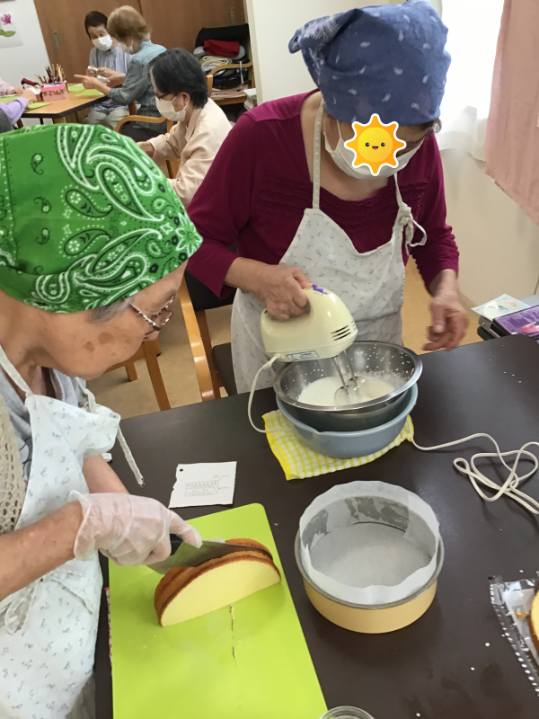 今回ケーキ作りをお手伝いしていただいたのが、誕生日のご本人様と料理教室をしていたという利用者様です。