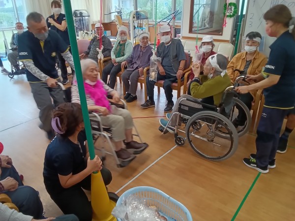 ピンポン玉送り、玉入れ、パン食い競争を楽しみました。