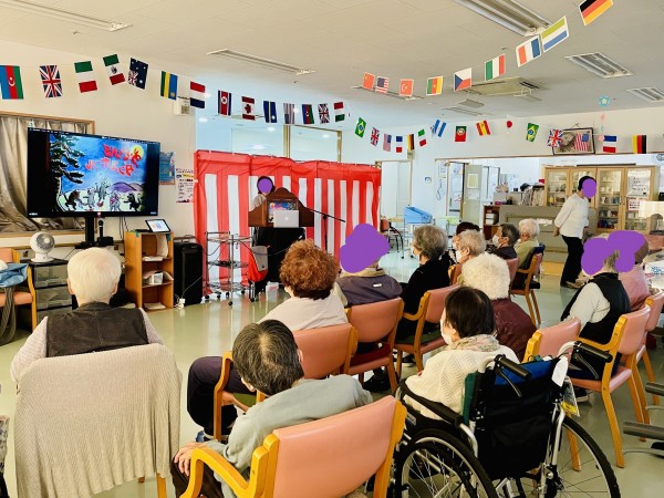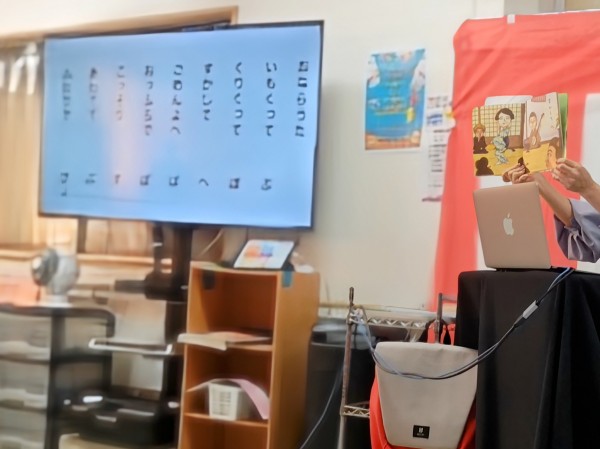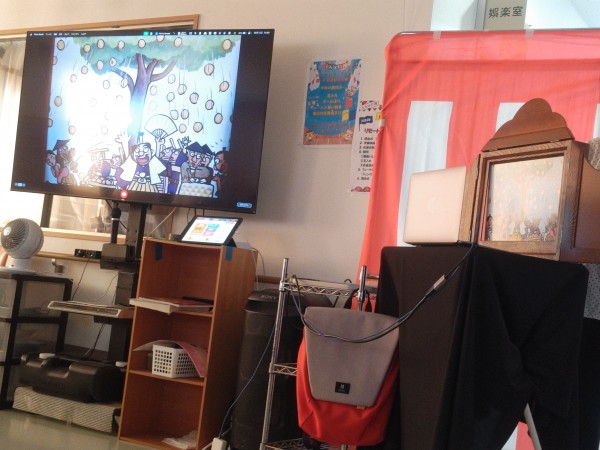 TV画面に紙芝居を映しつつ読んで下さいました。
