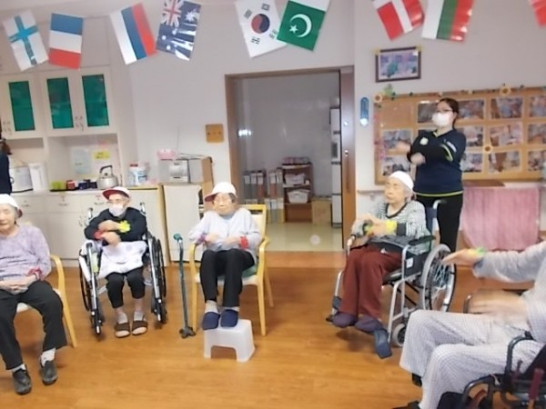 最初にラジオ体操で体をほぐしていただき