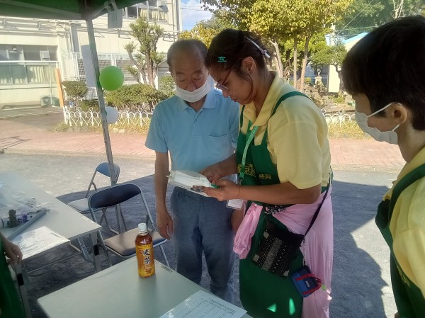 本当は去年同様入居者様3~4人+スタッフで参加する予定だったのですが、残念ながらタクシーがつかまらず、独歩で小学校まで行ける入居者様1名+スタッフで行ってきました。時間も遅れてしまい参加できるプログラムがなく荒木リーダーが保健活動推進委員に参加していることもあり入居者様に健康チェックの方に参加していただきました