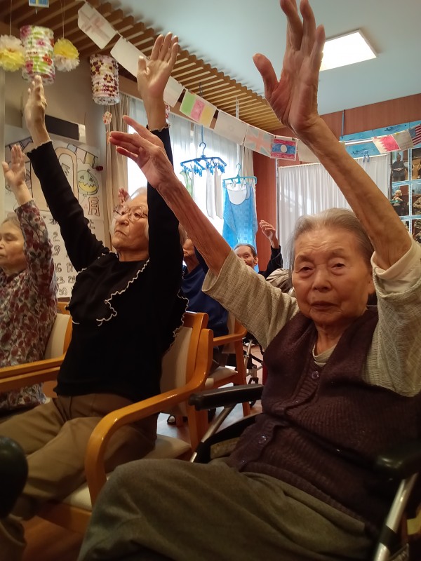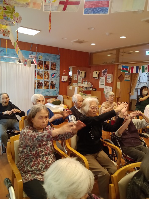 ここでは 皆様 毎日 体操を行っている成果を発揮され