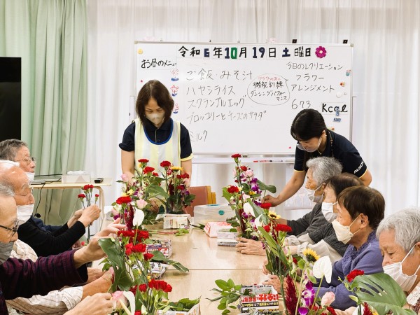 本日ご紹介するのは、18日(金曜)に行われた「フラワーアレンジメント」と「機能訓練ダンシングパフォーマンス」の2つ同時になりますー!