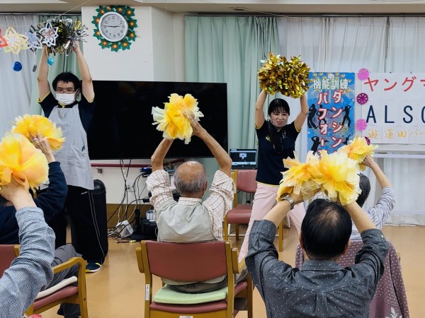 こちら、機能訓練ダンシングパフォーマンスは、フラワーアレンジメント後にスタッフ全員で行いました