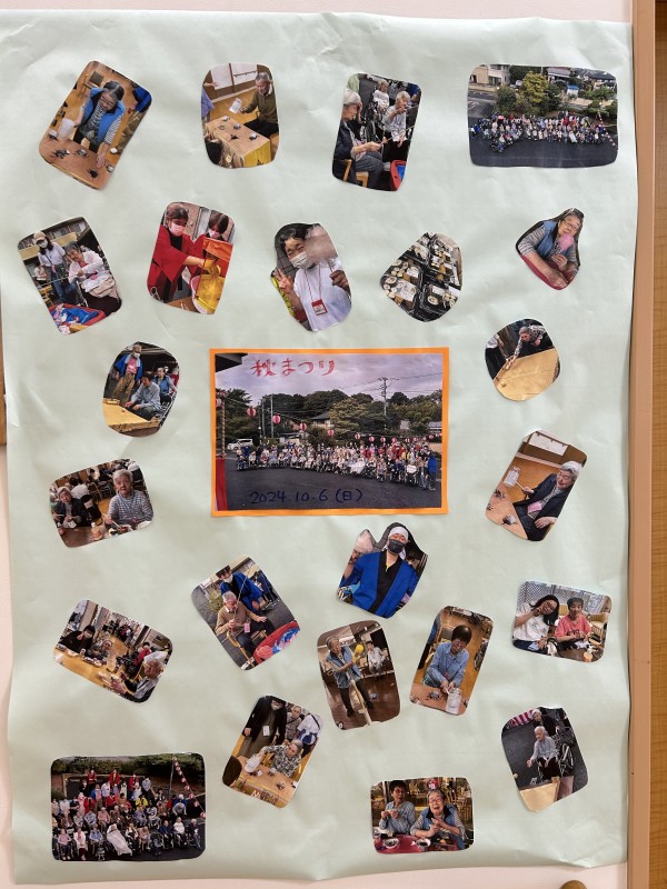 そこで、秋祭りの様子を各階に貼らせていただきました!