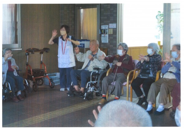 外気浴で体操などはよくやりますが、ノーアエクササイズは初めての試み。いつもよりカウントの声が大きく、皆様とても元気に体を動かされていらっしゃいました。外の空気は気持ちがよいですね♪