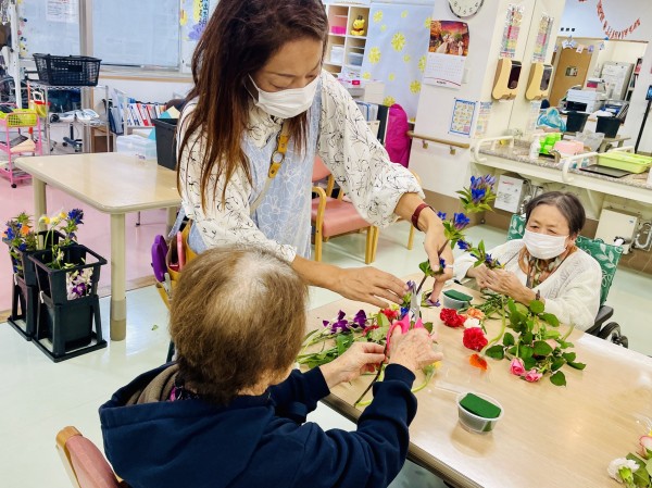 高さや角度、位置を職員や先生に相談しながら活けてます!