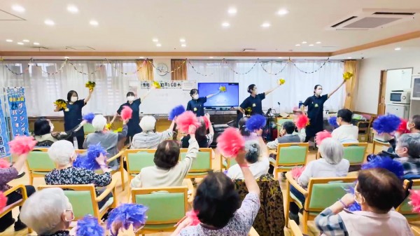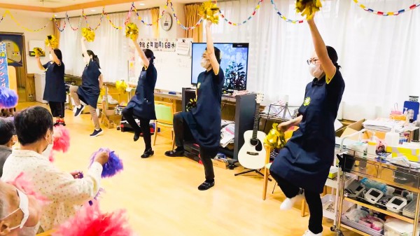 身体機能向上・認知機能向上・エモーショナルサポート・社会参加の促進などの効果がある『ダンシングパフォーマンス』では、青い珊瑚礁の曲で聖子ちゃんになりきり、ご利用者様とスタッフ皆で楽しみながらやりきりました‼️