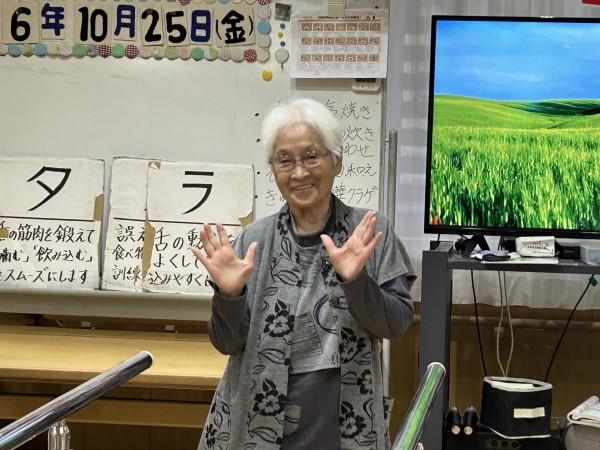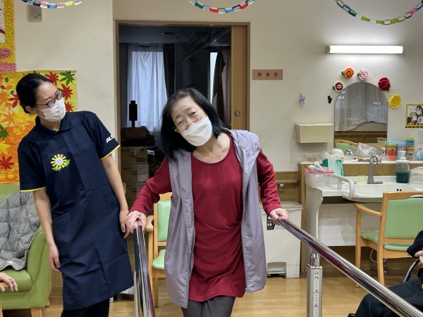皆で頑張った後には楽しみがあり、歩行訓練の後のポージングは恥じらいながらも笑顔いっぱいでした(๑>◡<๑)