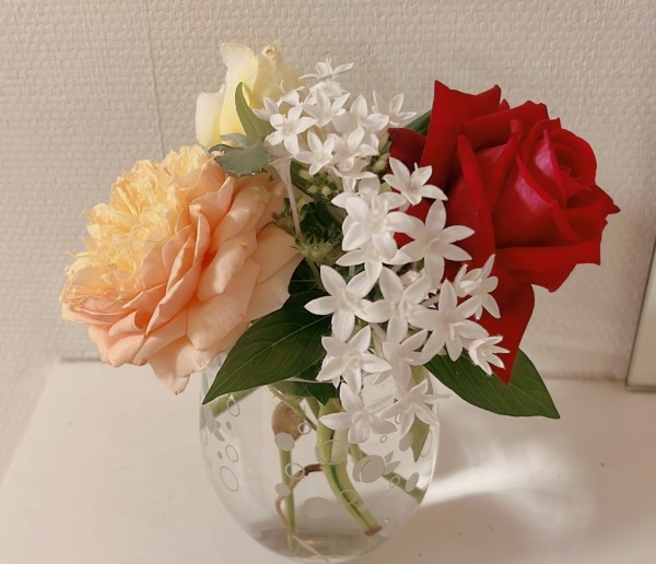 アミカの郷の入り口に 毎朝咲きたてのお花を飾っています。