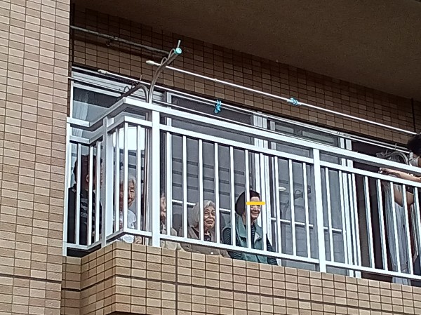参加できる方のみとなりましたが、1階は玄関外、2階と3階はそれぞれベランダへ避難誘導しました。