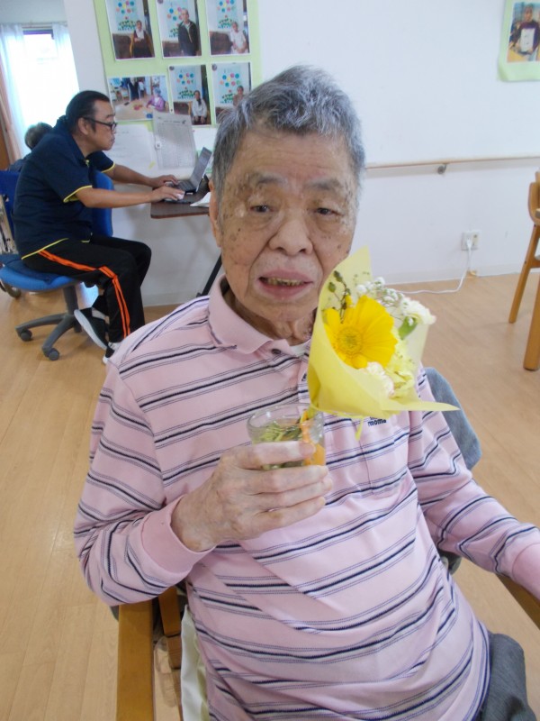敬老の日にお花を飾らせて頂いたのですが、皆様お花に負けない表情を見せて下さいましたので、遅くなっても
