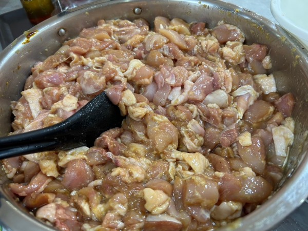 運動会のお弁当と言えば唐揚げ!という事で、朝早くからセンター長はお弁当の仕込みに…大きなお鍋いっぱいに鶏肉を漬け込んでいました〜