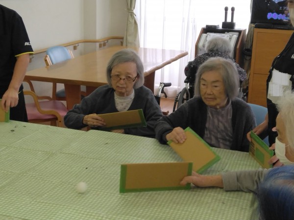 皆様ご自分の所にピンポン玉がくると慌ててしまったり逆に冷静に打ち返したりと皆様楽しまれたレクリエーションのお時間でした♪