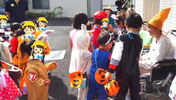 ご近所の保育園様より様々なコスチュームに身を包んだ可愛い園児様が遊びに来てくれました。\(~o~)/