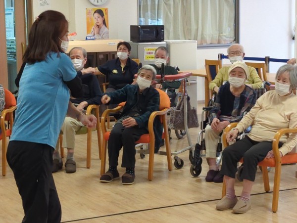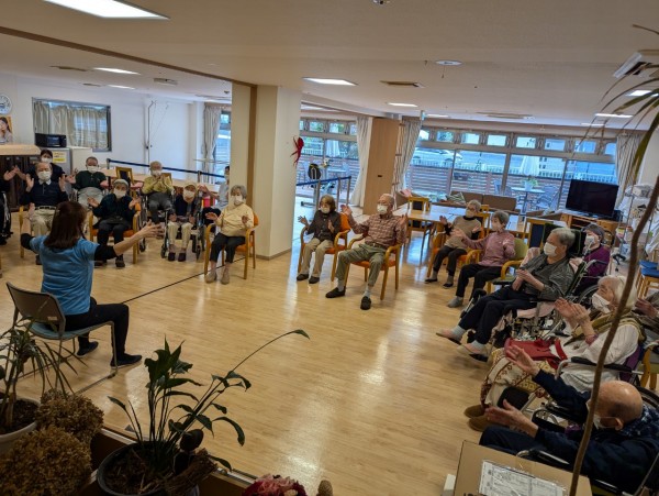 訪問運動教室は、毎月1回 先生が訪問し1階リビングで体操をおこなっています。