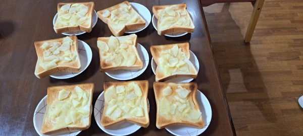 手作り林檎のトーストを作りました。皆様にお話しをすると「わぁ~、早く食べたいですよ。お腹が空きました。」と