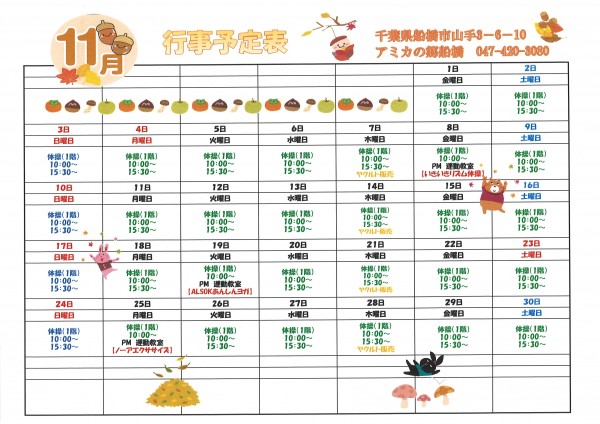 アミカの郷船橋の11月イベントカレンダーをご案内します!