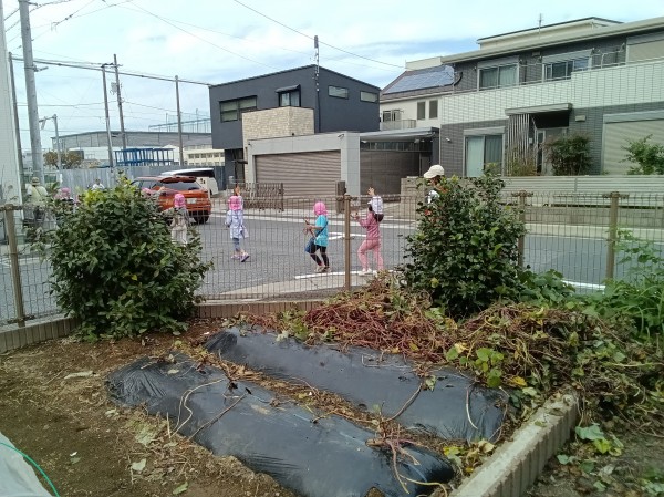 「さつま芋のぬいた茎を下さい。」と保育園の先生と子供たちが散歩の途中で寄ってくれました。