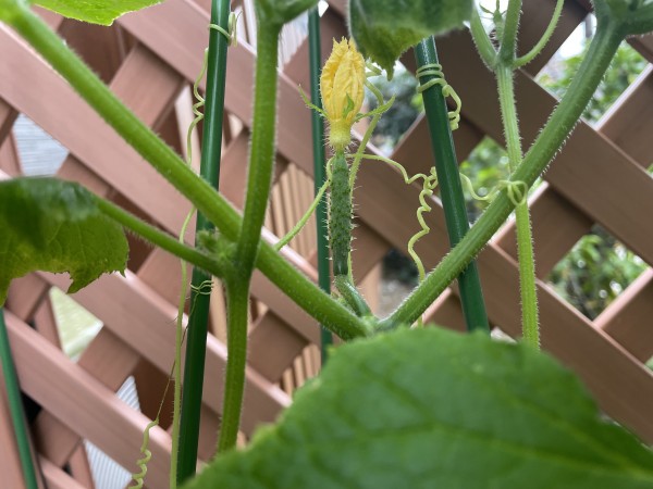 しばらくお届けしていなかった園芸倶楽部の報告ですが、塗り絵をしていた最中に抜け出したお客様達から「きゅうりの花が咲いているわよ〜」と・・・