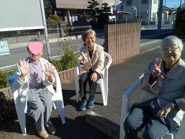 芋ほりの後は、暖かい日差しを背に外気浴もされました。