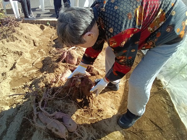 ホーム菜園で育ったさつま芋の収穫を行いました。