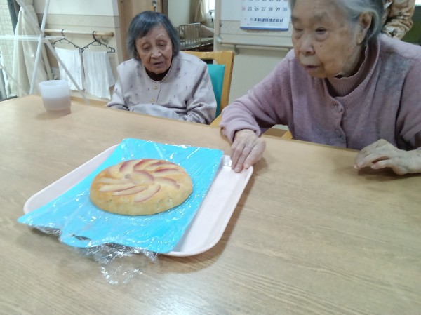 大きな丸い形とリンゴの香りに「おいしそうね」「早く食べたい!」