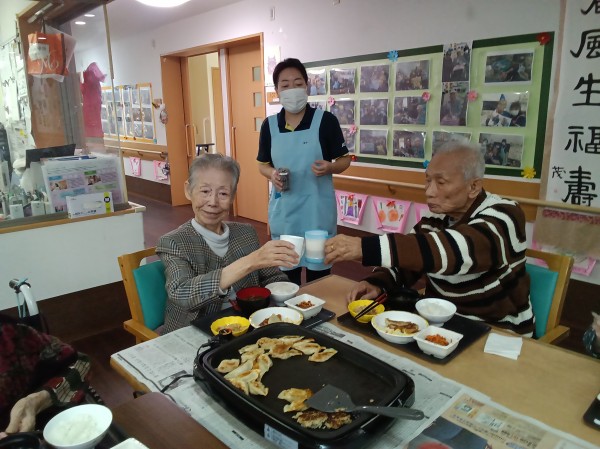 11月22日にみなさんにお手伝いいただいて餃子&もやしナムルを作ってノンアルビールでかんぱぁ~い(^^)/
