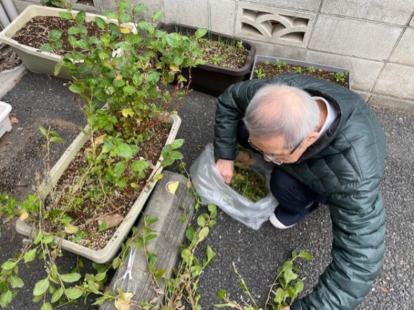 グループホームみんなの家・中野鷺宮で藍染め用の藍を収穫しました。