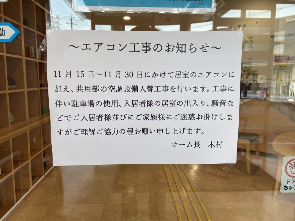 エアコン工事のお知らせ