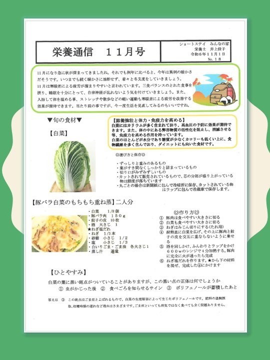 *** 栄養通信 11月号 ***(栄養士 井上佳子)