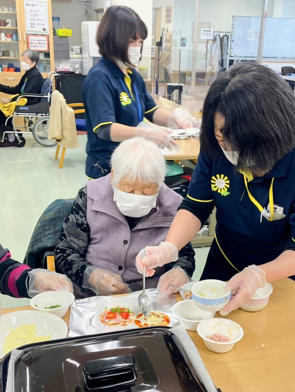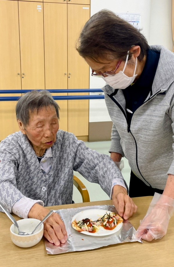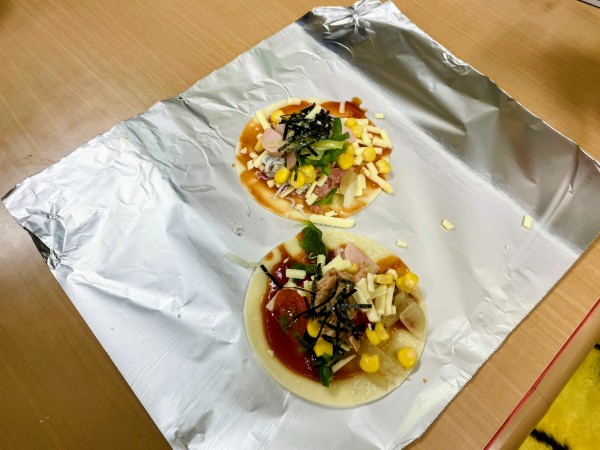皆さんには餃子の皮にケチャップをぬって、好みの具材をのせていっていただきました!