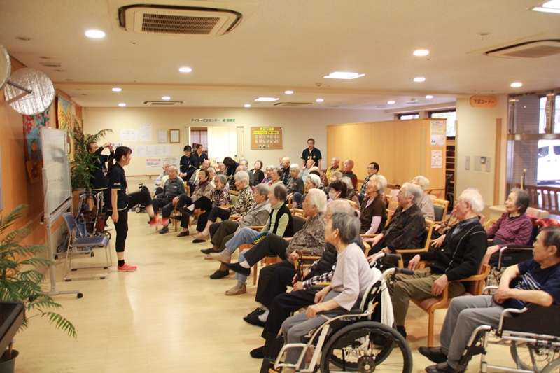 11月13日火曜日、毎月第二火曜日にノーアエクササイズ、脳(頭)と脚を鍛えて老化予防と進行を遅らせる効果が有り、認知症の予防また、転倒防止に役立つエクササイズです。すこや家西東京を始めグループホームみんなの家西東京、ショートステイみんなの家西東京、デイサービス遊西東京では、この1年11回のエクササイズを行ってきました。ご利用者の皆様方は、とても楽しみに体を動かしております。今回は、すこや家西東京の玄関ホールにて行い、面会に来られたご家族も一緒に参加されたり、職員も笑顔で楽しみながらの1時間でした。