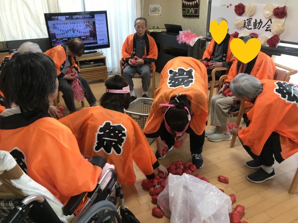 玉入れでは、頭の上や足の間など色んなところに玉が飛び交い、「どこ行った⁉」「早く集めて~」と大騒ぎ(笑)