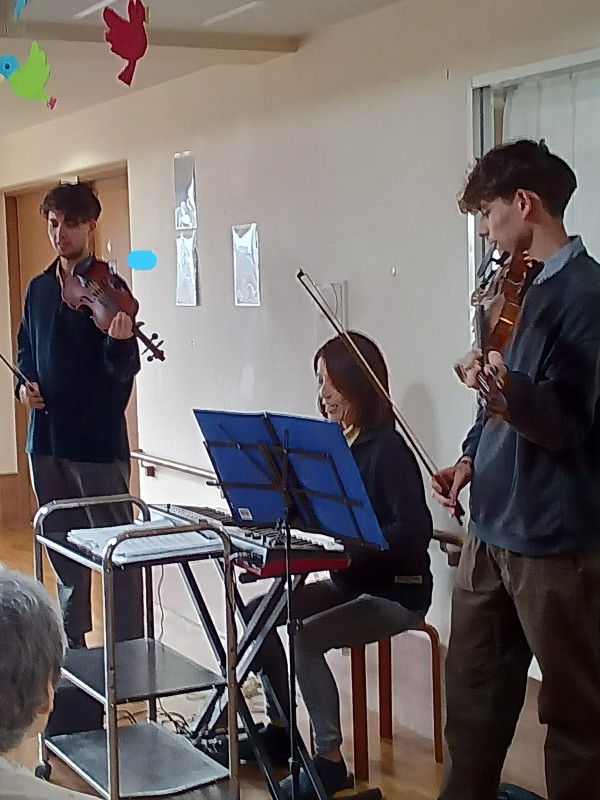ご利用者様や職員達が見惚れてしまいそうなとても素敵なバイオリンの音色ととても綺麗な歌声でした。