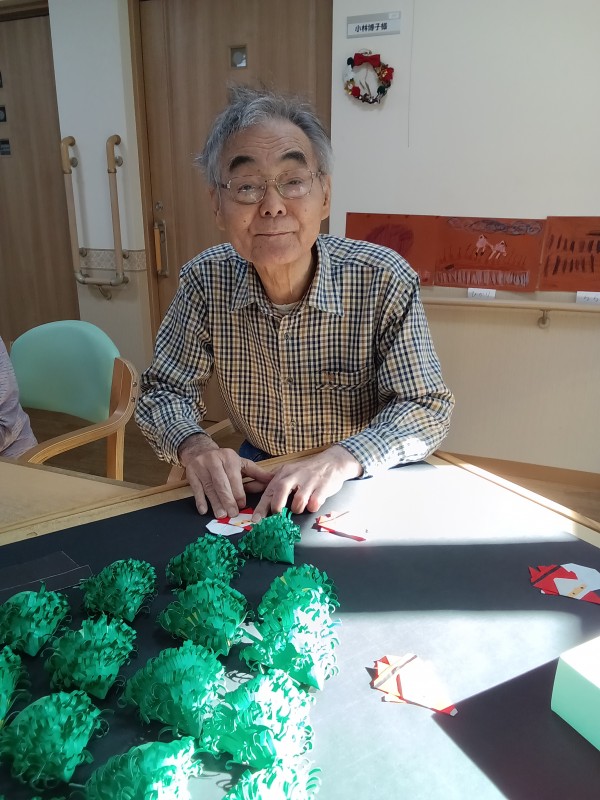 12月の壁飾りをご利用者様と一緒に作りました。
