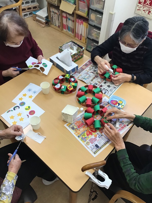 ということで、皆様にクリスマースリース作りをしていただいています。
