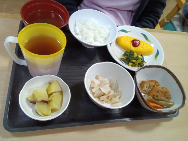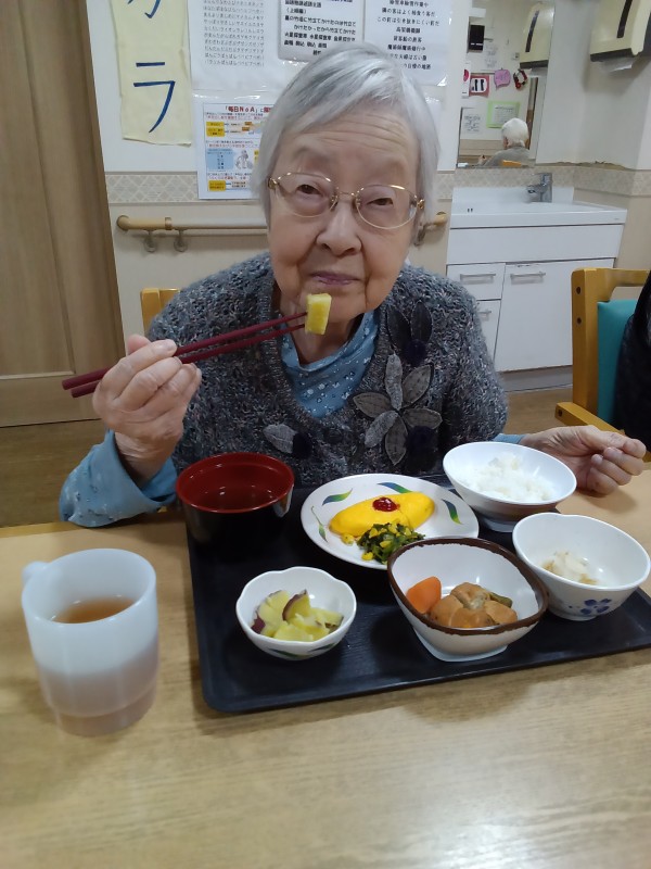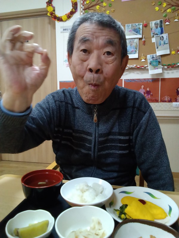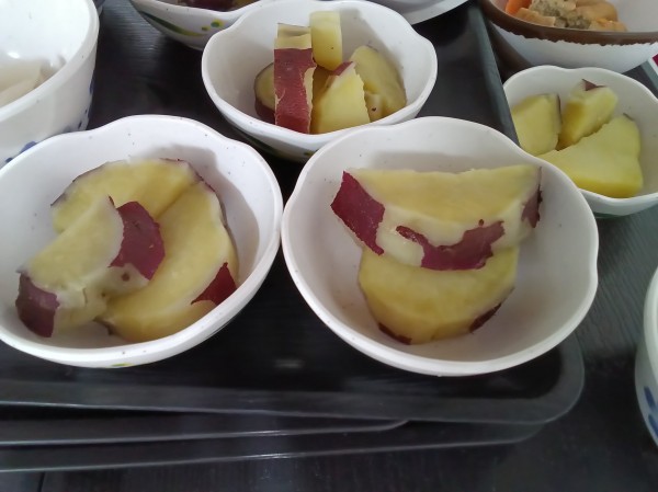 ふかし芋のおやつに続いて、本日は甘く煮て、夕食に召し上がっていただきました。
