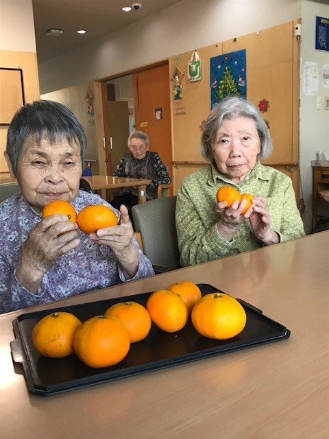 本日は先週2階入居者様(S様)の面会時、ご家族様のお家で採れたミカンを沢山いただきました(*^^*)