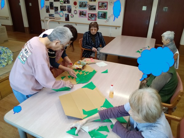 ということで、ご利用者様にお手伝いいただき、クリスマス装飾を作成しました。